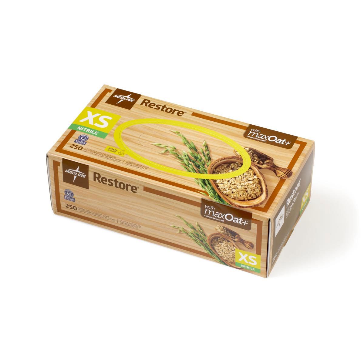 Medline Restore Nitrile Exam Gloves put a layer of maxOat+ colloidal oatmeal between your skin and glove to help relieve conditions associated with dry skin. The result: hands feel softer, smoother and ready to perform.