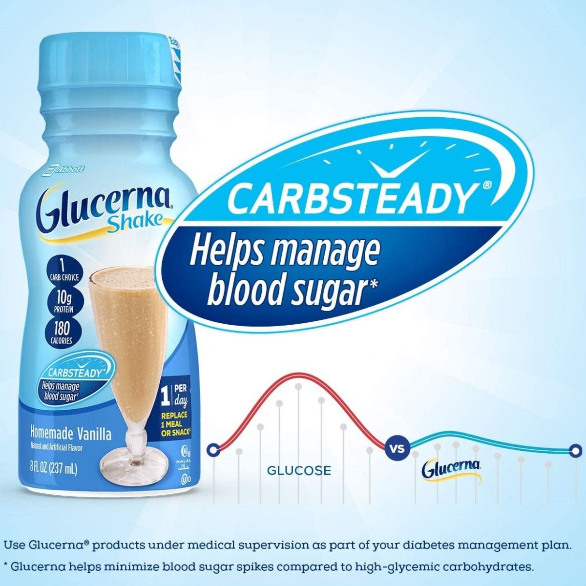 * Designed to help minimize the blood sugar spike from consuming Glucerna compared to high-glycemic carbohydrates
