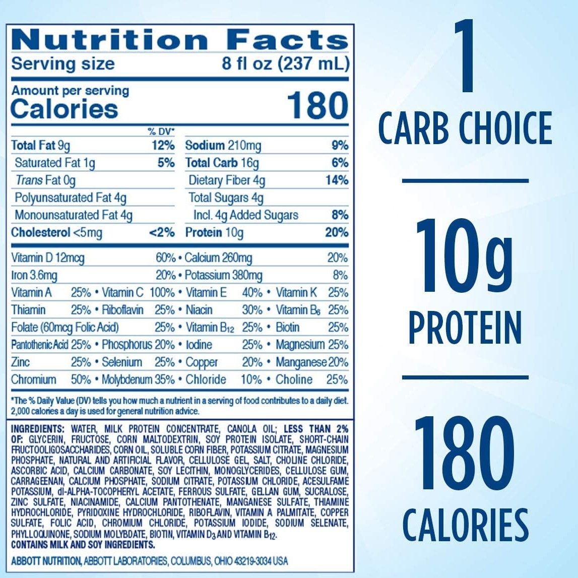 - 10 g of protein, 4 g sugar, 1 carb choice