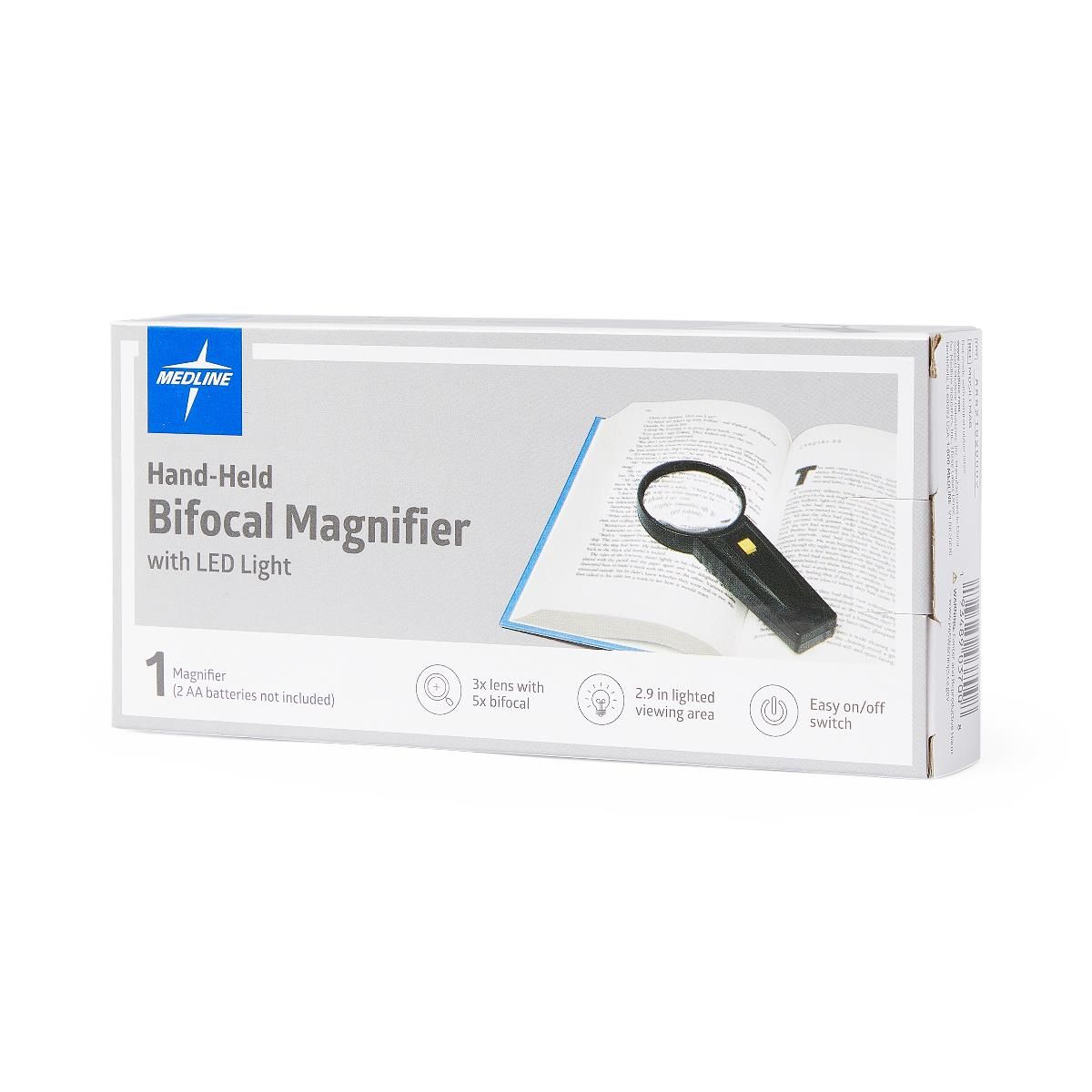 Medline Hand-Held Bifocal Magnifier with LED Light, One