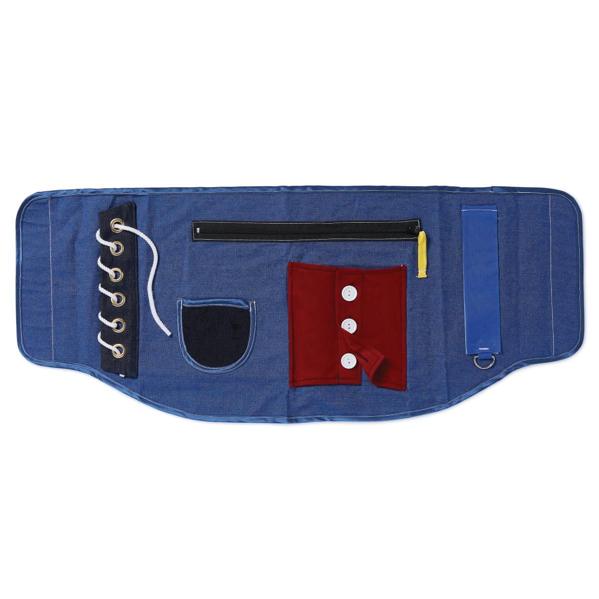 • Zipper, button, pockets and laces help encourage redevelopment of fine motor skills
